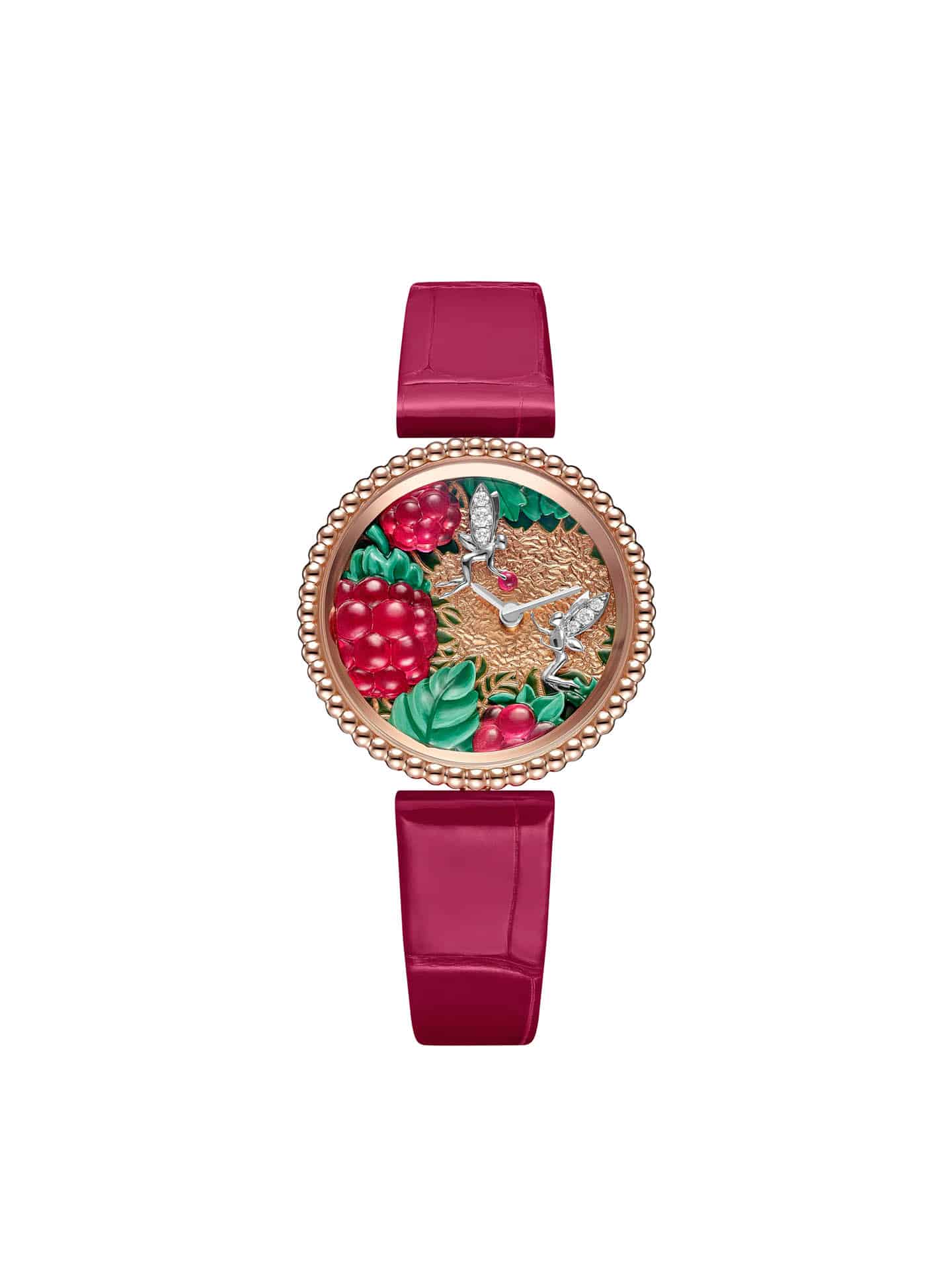 Van Cleef & Arpels presenta los encantadores cronógrafos Perlée Extraordinaire Fruits Enchantés Myrtille y Framboise que combinan alta relojería y savoir-faire.