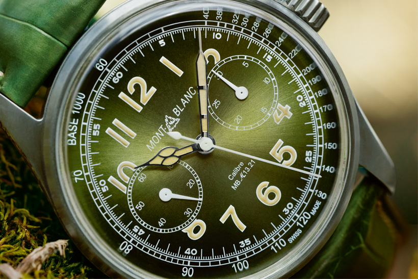 Inspirada en los legendarios relojes profesionales Minerva de la década de 1920 y 1930 creados para uso militar y montañismo de exploración, la colección 1858 rinde homenaje a los 160 años de la Manufactura Minerva y su extraordinario legado. El reloj presenta una carátula verde ahumada original y una correa de piel de aligátor verde a juego con costuras de color beige, procedente de la Montblanc Pelletteria en Florencia. Evocando los emblemáticos cronógrafos Minerva, se presenta con una esfera bi-compax con un pequeño segundero a las 9h, contador de 30 minutos del cronógrafo a las 3h y una escala taquimétrica en la parte exterior de la carátula.