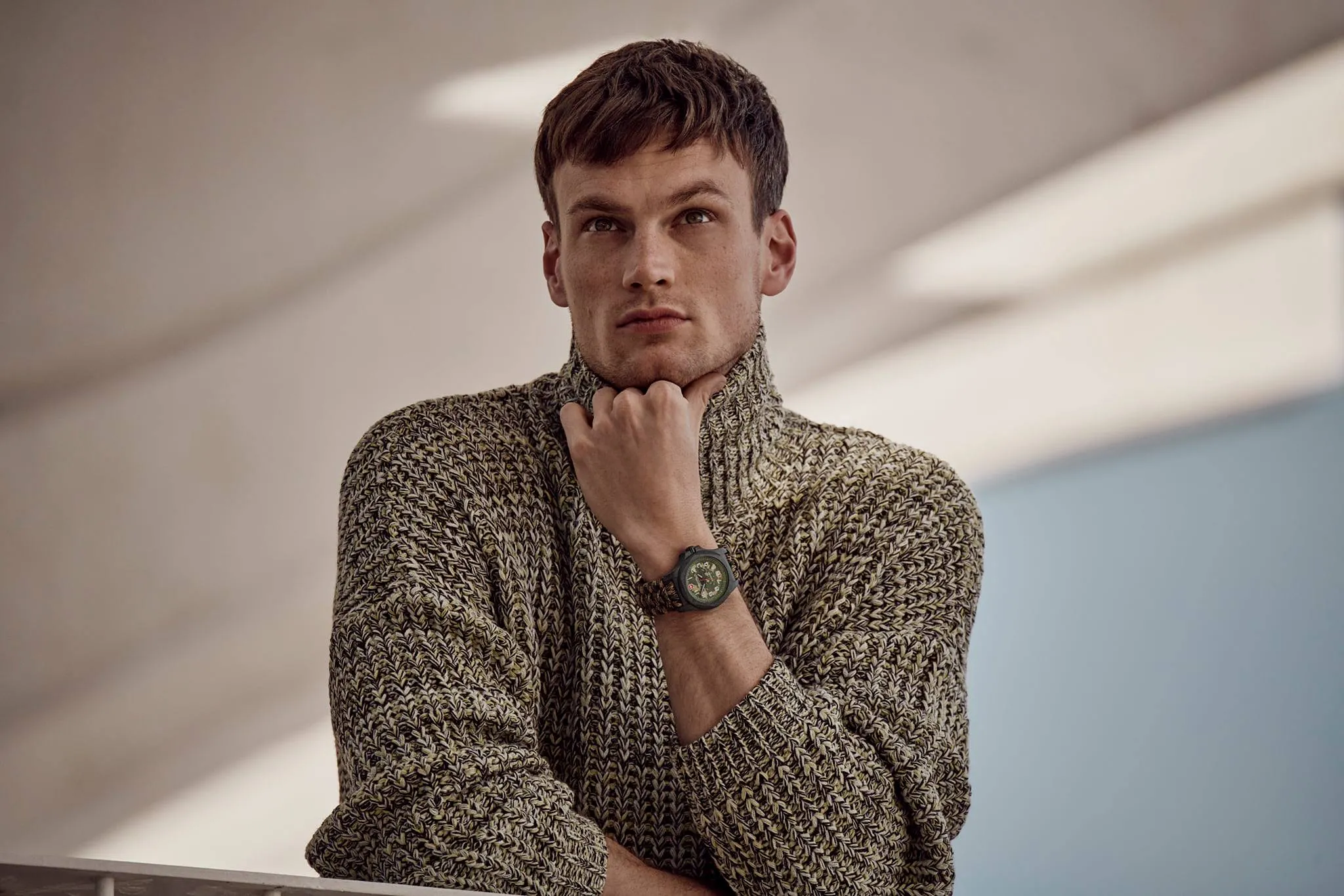 La pieza se abraza al pulso gracias a un textil empleado en los paracaidas conocido como paracord, propuesto con la finalidad de poder convertirse en una herramienta útil durante la exploración. La caja de carbono está fabricada en un compuesto similar al empleado en los transbordadores, por lo que resiste temperaturas superiores a los 1,000 grados centígrados. Finalmente, el bumper funge como brújula y en el kit se contemplan correa de NATO verde militar y una adicional de caucho vulcanizado con hebilla de titanio.