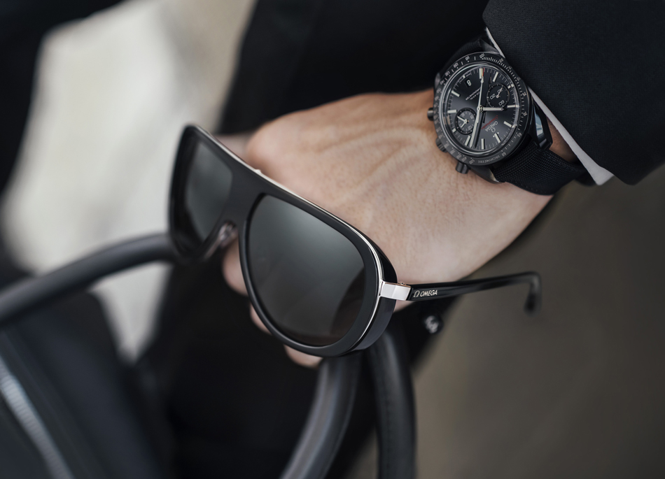 Siguiendo los pasos de la joyería y la perfumería, Omega presenta una colección producto de la asociación con Marcolin, Casa italiana dedicada a la artesanía de lentes oscuros, y que en esta ocasión han adoptado diseños icónicos de la marca propuestos en sus emblemáticos relojes como: el patrón de flor de la joyería de Omega, las bisagras flexibles inspiradas en la corona de un reloj, el acabado negro mate que simula el Dark Side of the Moon de relojería o las distintivas garras de los relojes Constellation.