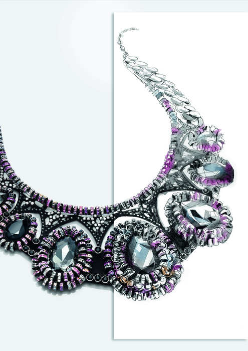 La inspiración también es el jardín, sin embargo, éste ya no es tan cargado, es más tenue, son jardines tipo zen. En estas piezas apreciamos líneas minimalistas y dos subtemas adicionales: uno donde el oro amarillo tiene gran protagonismo, con líneas muy delicadas y en la que destaca el uso de la filigrana con aspecto de encaje, collares en tipo “Y” o cascada, que destacan por su gran brillo. En el segundo subtema apreciamos tonos morados, lilas, negros y combinaciones de materiales como el cristal, el metal y la Alcántara®. Además, los insectos, que tuvieron gran aceptación hace tres años, regresan en esta temporada en cristales multicolor.