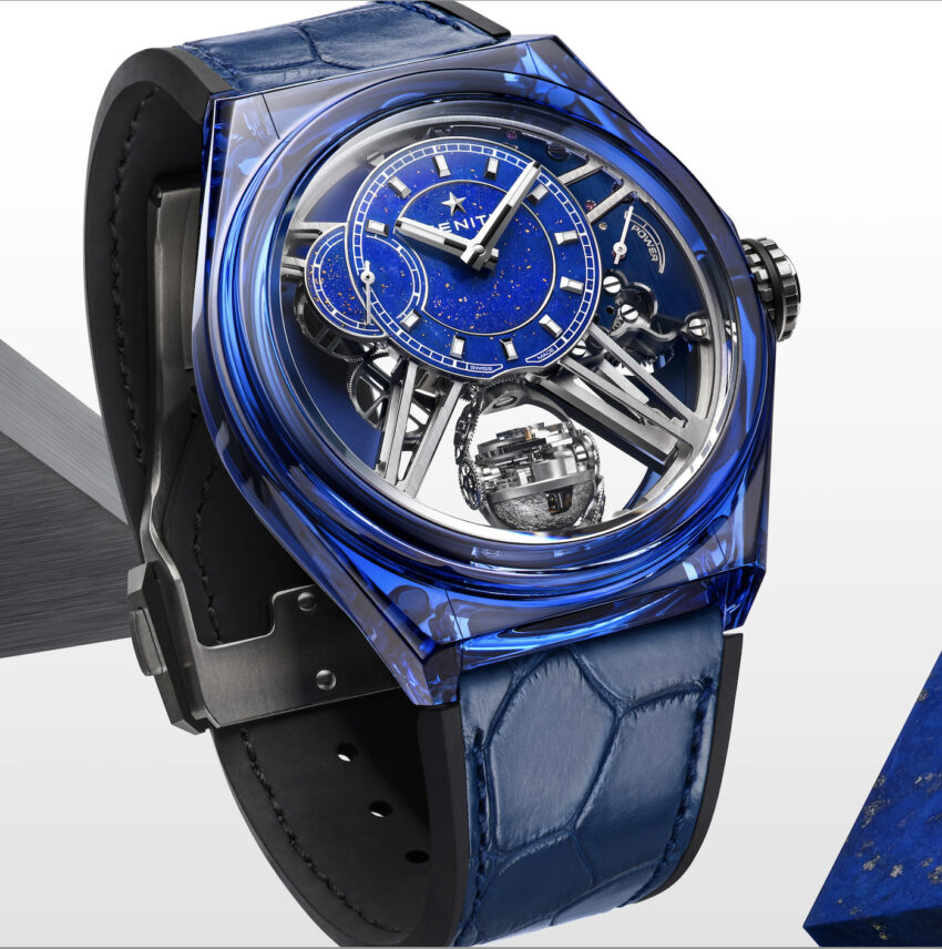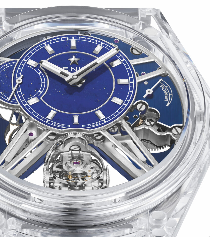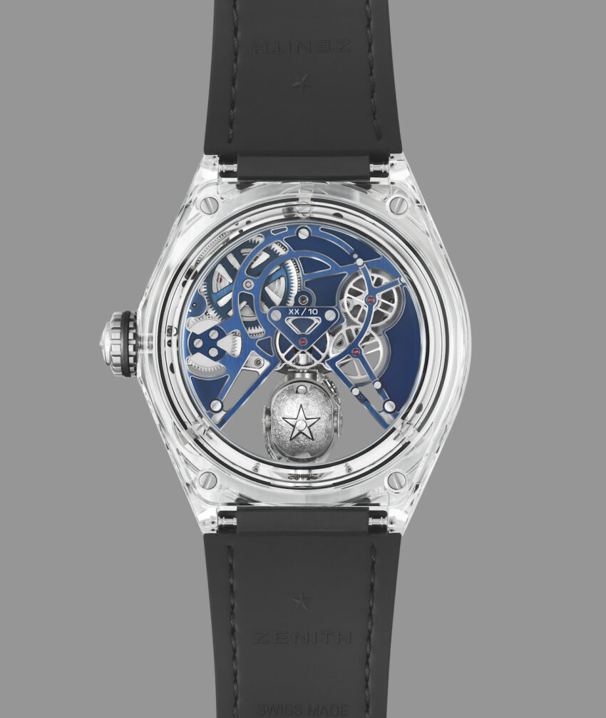 En 2021, Zenith lanzó una reinterpretación de este calibre, lo rediseñó con una nueva arquitectura que permitía una mejor visualización y lo exhibía en toda su intrincada perfección. Para lograrlo lo colocó en una caja de zafiro que no deja nada a la imaginación.