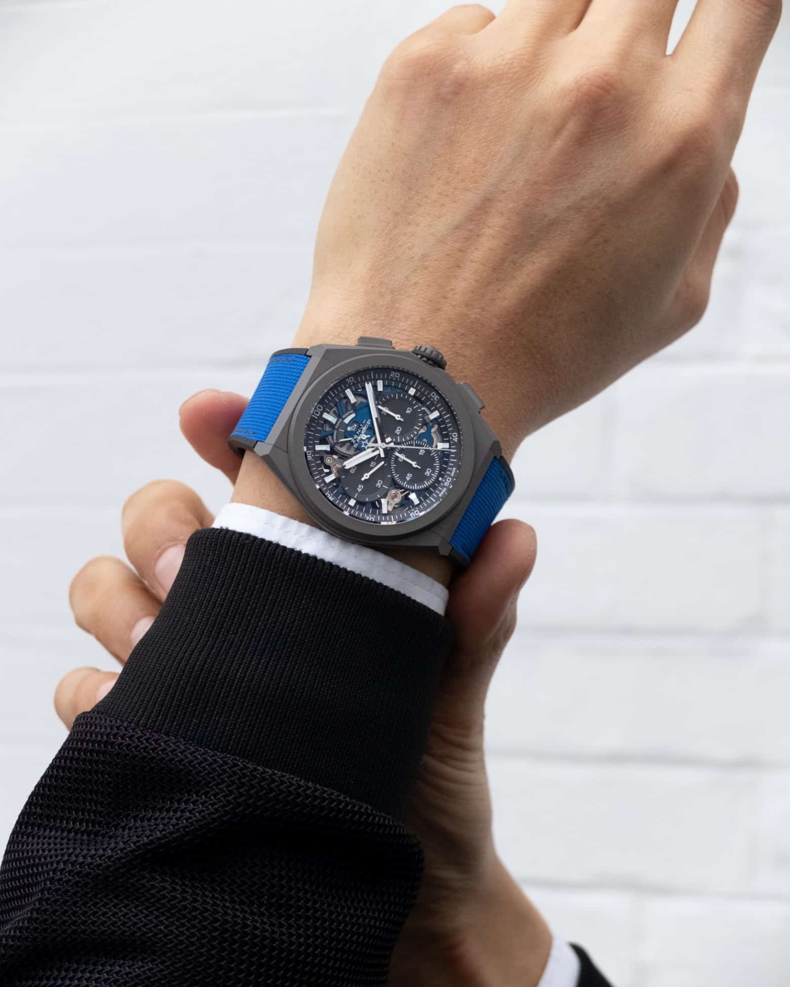 El color azul ocupa un lugar especial en el acervo de Zenith. Fue el telón de fondo del cielo nocturno estrellado en el que se inspiró el fundador de la manufactura, Georges-Favre Jacot, para dar nombre a su premiado calibre y, finalmente, a su marca. Más recientemente, ha sido uno de los colores característicos del A386, uno de los primeros relojes equipados con el legendario calibre de cronógrafo automático de alta frecuencia El Primero. También es un color que ha sido ampliamente explorado por la manufactura en sus relojes más complejos, por lo que se ha convertido en un símbolo de la Alta Relojería futurista de Zenith.