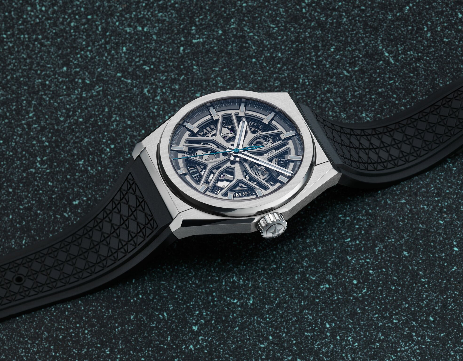 Algo que nos encantó de esta edición especial, es la carátula calada que evoca el escultórico diseño de la rueda del SUV premium. También podemos notar que en su correa de caucho, vienen los detalles de la tapicería de este vehículo minimalista y poderoso en forma de diamante. Impulsada por un nuevo movimiento esqueletado Elite, la primera reinterpretación de ZENITH de su colección Defy Classic irradia un encanto único basado en un diseño inspirado y potente.