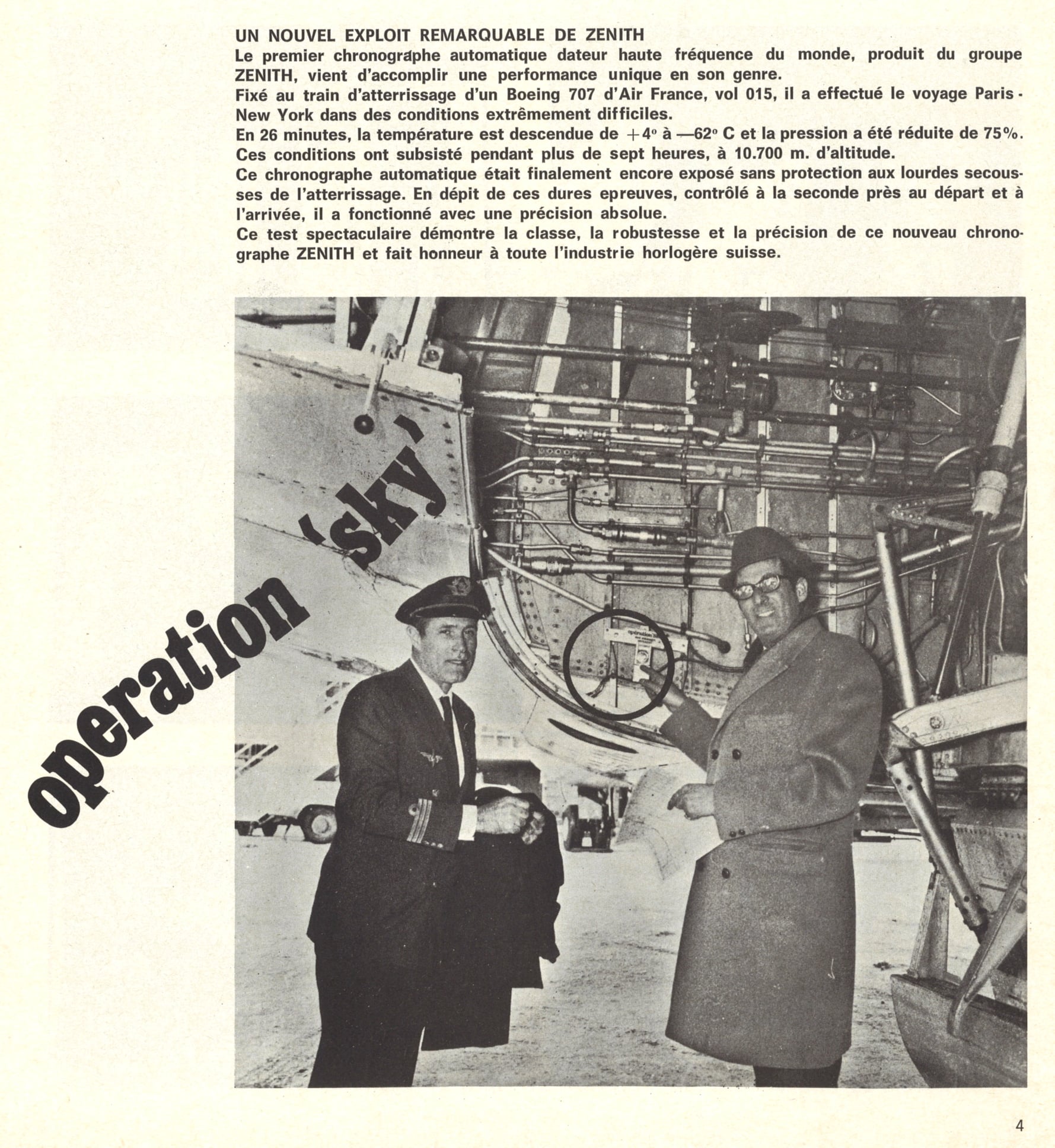 El A385 debe su fama al soportar la famosa Operation Sky, en donde se colocó la pieza en el tren de aterrizaje de un Boeing 707 de Air France que cubría la ruta París – Nueva York. La idea era conocer la resistencia que El Primero A385 ofrecía, por lo que al aterrizar se revisó la pieza y se notó que su funcionamiento era perfecto. Los cambios de presión y temperatura no hicieron mella en el funcionamiento de este ícono, dando prueba de su total robustez.