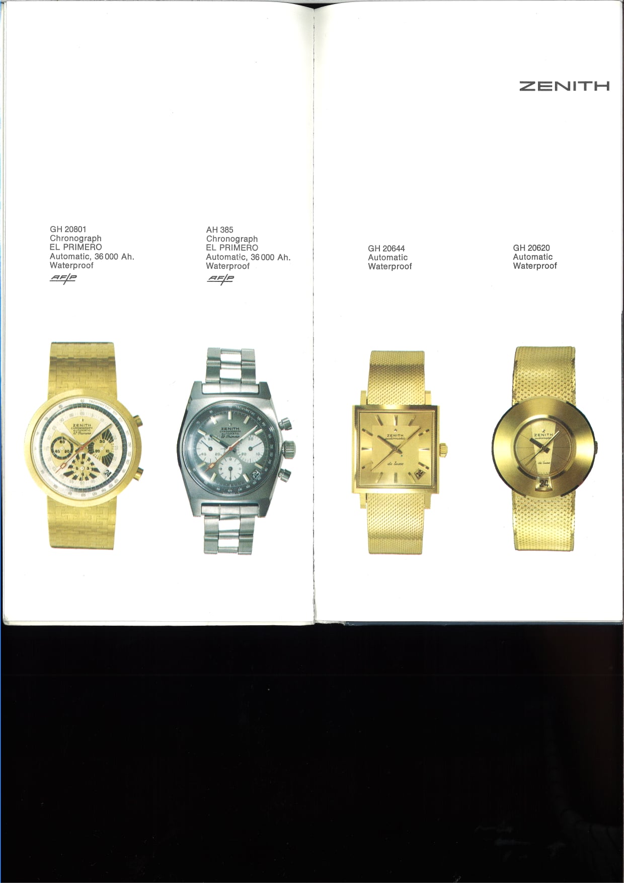 - Funciones: horas, minutos, segundero permanente; totalizadores de horas y minutos y cronógrafo de alta frecuencia; escala taquimétrica en carátula y fechador
