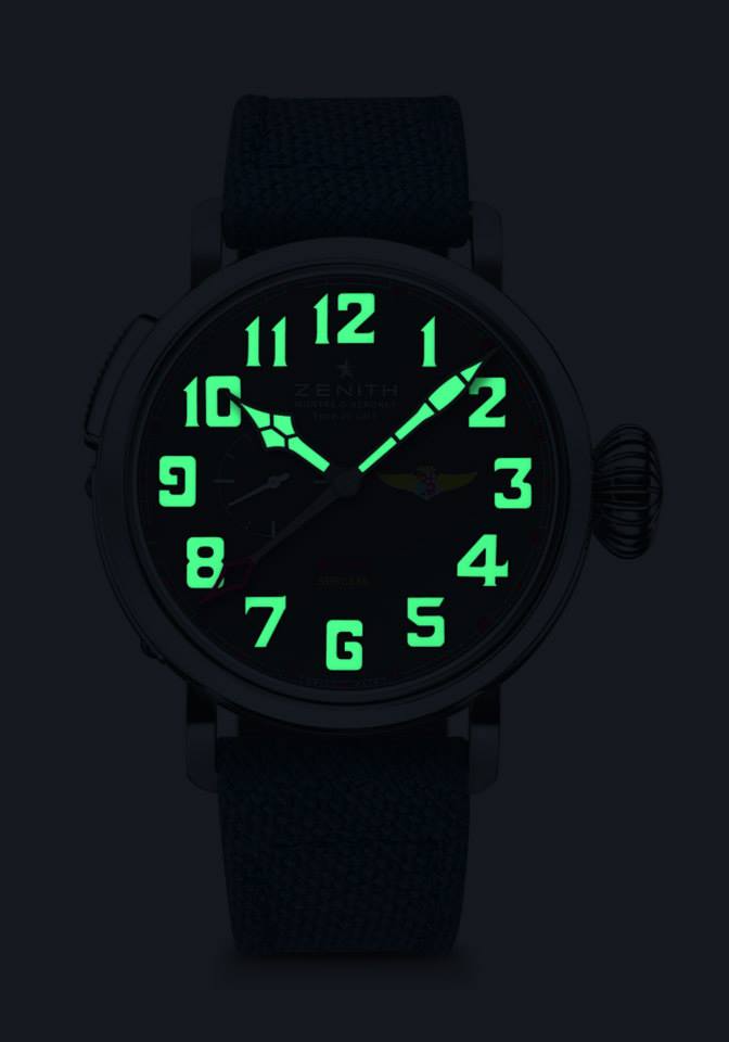 Aun cuando los gloriosos días de la conquista del aire parecieran haber quedado atrás, Zenith se encarga de honrarlos… es por ello que ahora ha creado una estupenda serie limitada de 50 piezas del Pilot Montre d’ Aéronef 20 GMT tribute to Aviazione Navale. Un noble descendiente de los primeros relojes para piloto creados por esta Manufactura y al que dotó con un generoso diámetro de 48 mm. Esta pieza de colección ostenta las distintivas características de la colección: la imposición de los números arábigos hechos completamente en SuperLumiNova blanco que a la vez sirven como marcadores de la hora , así como una gran carátula en negro mate.