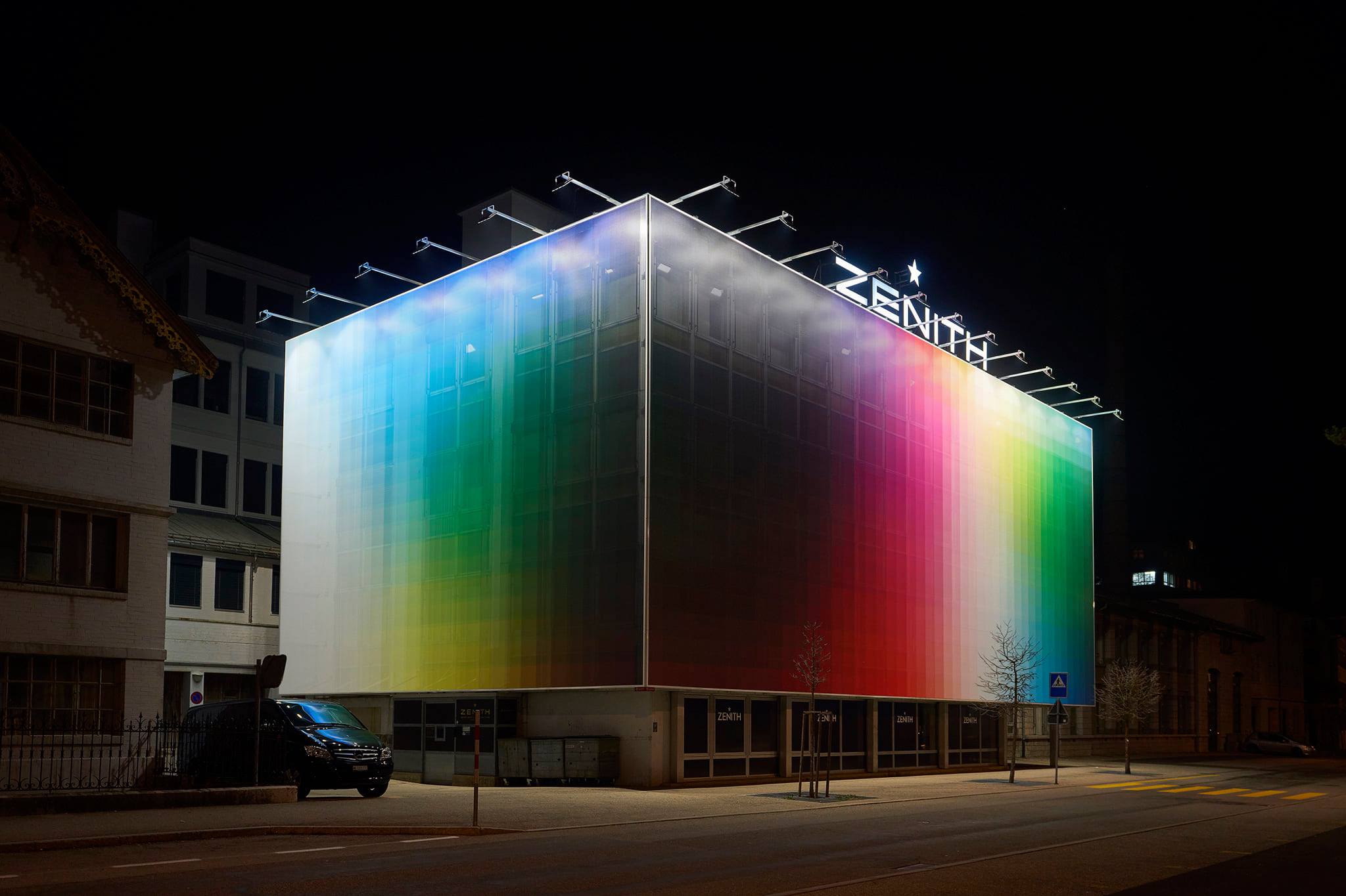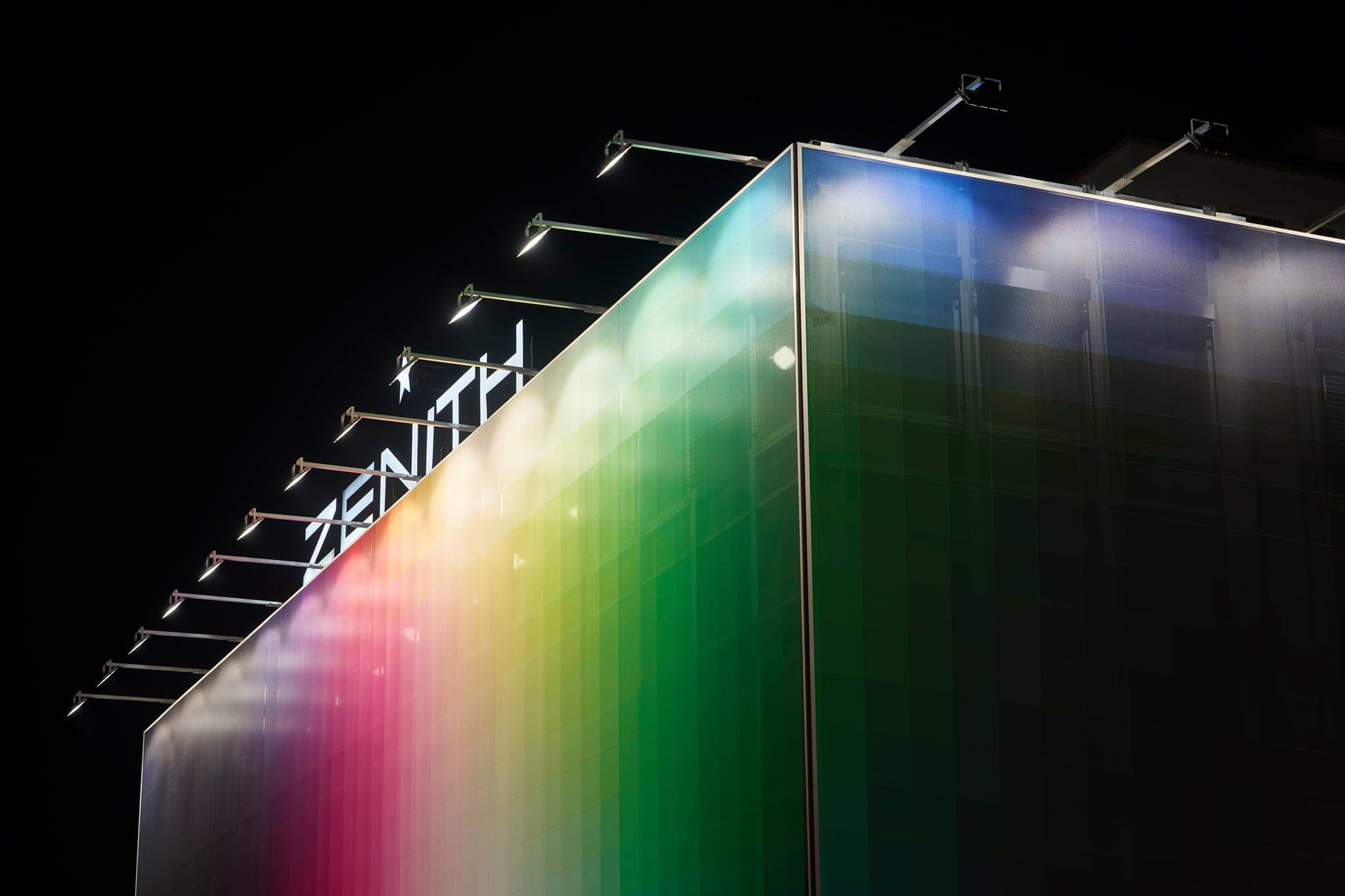 Con el edificio principal de la Manufactura Zenith como lienzo para el artista, Pantone ha concebido una gran obra que cubre toda la fachada del edificio con su estilo emblemático, combinando un sorprendente espectro de colores con gráficos digitales. La colaboración entre un relojero histórico y un artista contemporáneo, una primicia en la relojería especialmente innovadora para una manufactura de Le Locle, declarada Patrimonio de la Humanidad por la UNESCO, constituye un testimonio monumental de la visión innovadora, audaz y original de Zenith, que ahora todo el mundo puede apreciar.