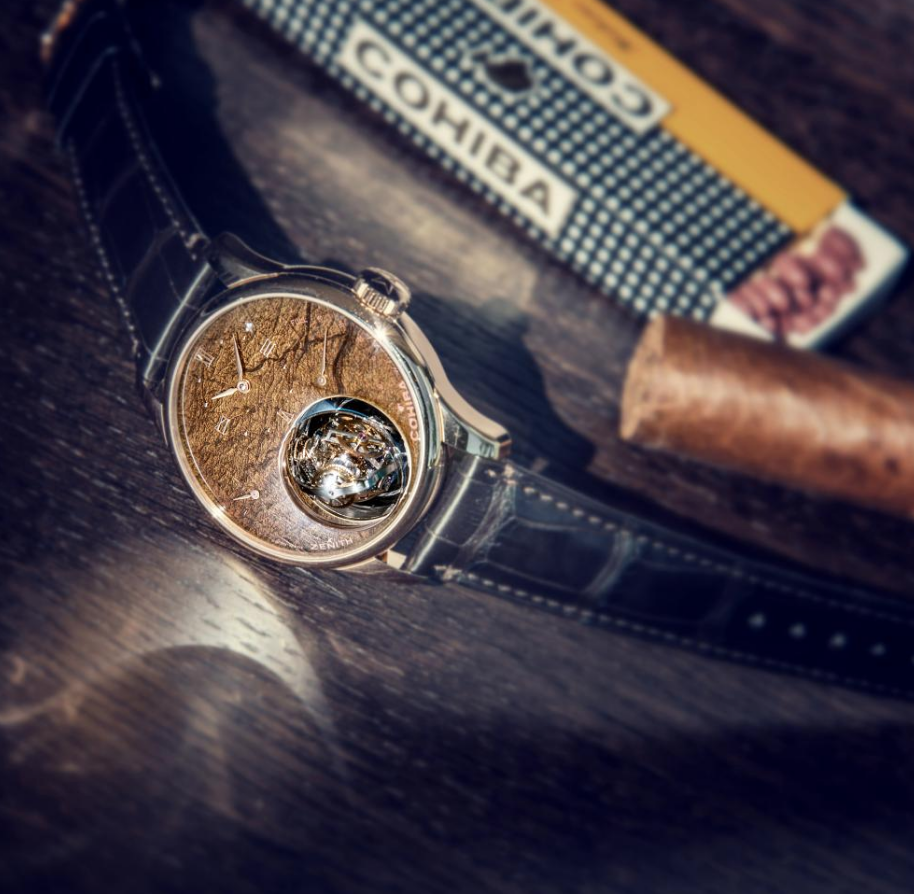 Con motivo del festejo y de la importante alianza que mantienen ambas marcas, Zenith lanzó el nuevo Academy Christophe Colomb Tribute to Cohiba que se caracteriza por su elegante caja de oro rosa de 45 mm de diámetro y una carátula hecha de ambar. La textura con la que fue desarrollada esta pieza se asemeja a la de una hoja de tabaco, mientras que el color marrón tornasolado alude al típico puro de la marca.