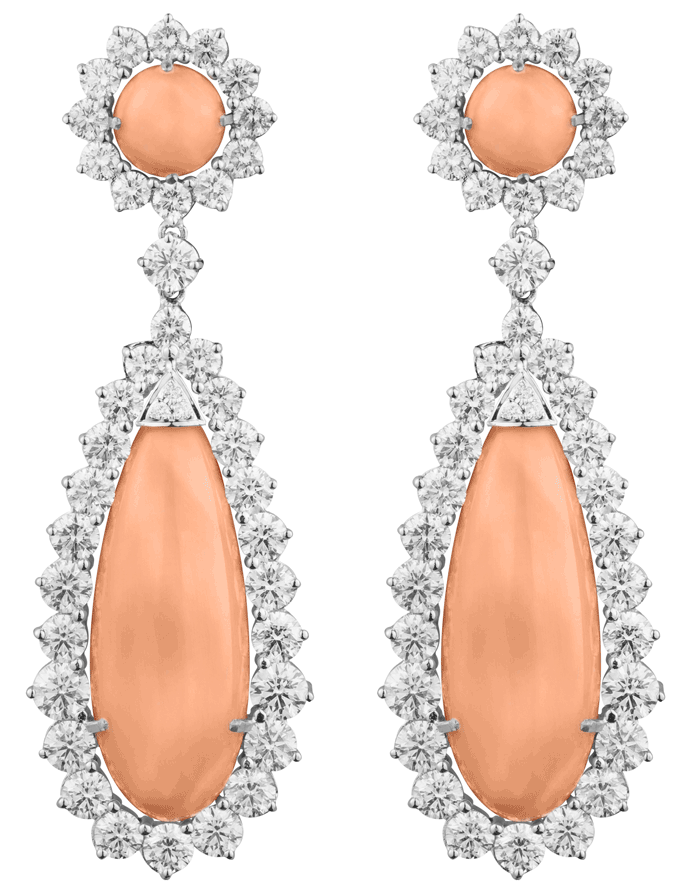 - Pendientes de coral con diamantes y oro blanco pavonado.