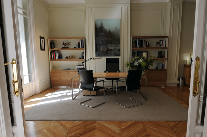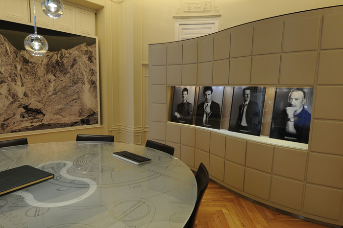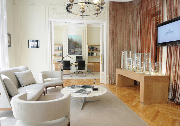La decoración de las nuevas oficinas Audemars Piguet se ha confiado a CGR Arquitectos y en su trabajo se destacan los valores de la marca a través de su estilo. Las maderas de roble en las carpinterías, el verde en las plantas, el blanco de paredes y tejidos, evocan los colores del Valle de Joux en Suiza. Este lounge ofrecerá la oportunidad a los amigos de la marca, de descubrir las colecciones, en un entorno más íntimo y cálido. La nueva sede dispone también de un taller de reparación de la Manufactura, espacio que sirve para brindar una mejor deficinión del mundo Audemars Piguet.
