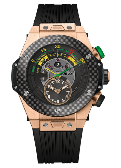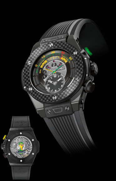 A continuación debemos presentar la pieza más impactante de cara al Mundial de Fútbol, que además incorpora el primer movimiento cronógrafo central bi-retrógrado, mecanismo que posibilita la medición de cada uno de los tiempos de actividad en un partido de fútbol, incluidos los tiempos suplementarios.