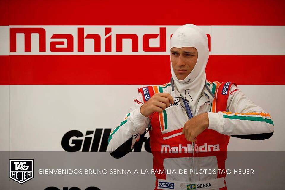 Senna representa el enlace perfecto entre el pasado de TAG Heuer en el campeonato abierto más nuevo y exclusivo del mundo: la Fórmula E, la marca suiza es socio-fundador de ésta y socio oficial de Mahindra Racing. El equipo de Bruno Senna Fórmula E cuenta con su copiloto Karun Chandhok, otro amigo de la marca. Esta categoría, en su temporada debut ha despertado un sinnúmero de expectativas positivas con respecto al formato de competencia, mismo que utiliza un tipo de chasis para toda la parrilla, un tipo de motor y un tipo de neumáticos. La competencia –100% eléctrica– es la primera que forma parte de la FIA, y seguramente traerá tecnologías de última generación a quienes hayan decidido invertir en el serial, como lo es TAG Heuer, Cronometrador Oficial.