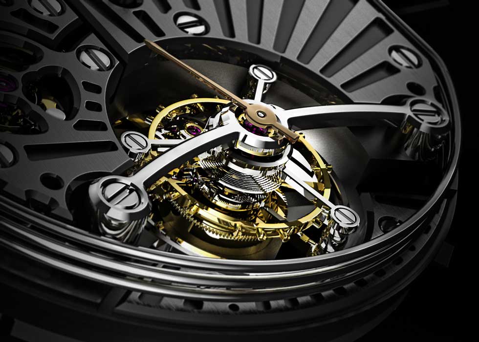 ...presenta el Daniel Roth Carillon Tourbillon, que incorpora un dispositivo de sonería con tres martillos, configuración poco habitual en este tipo de piezas.