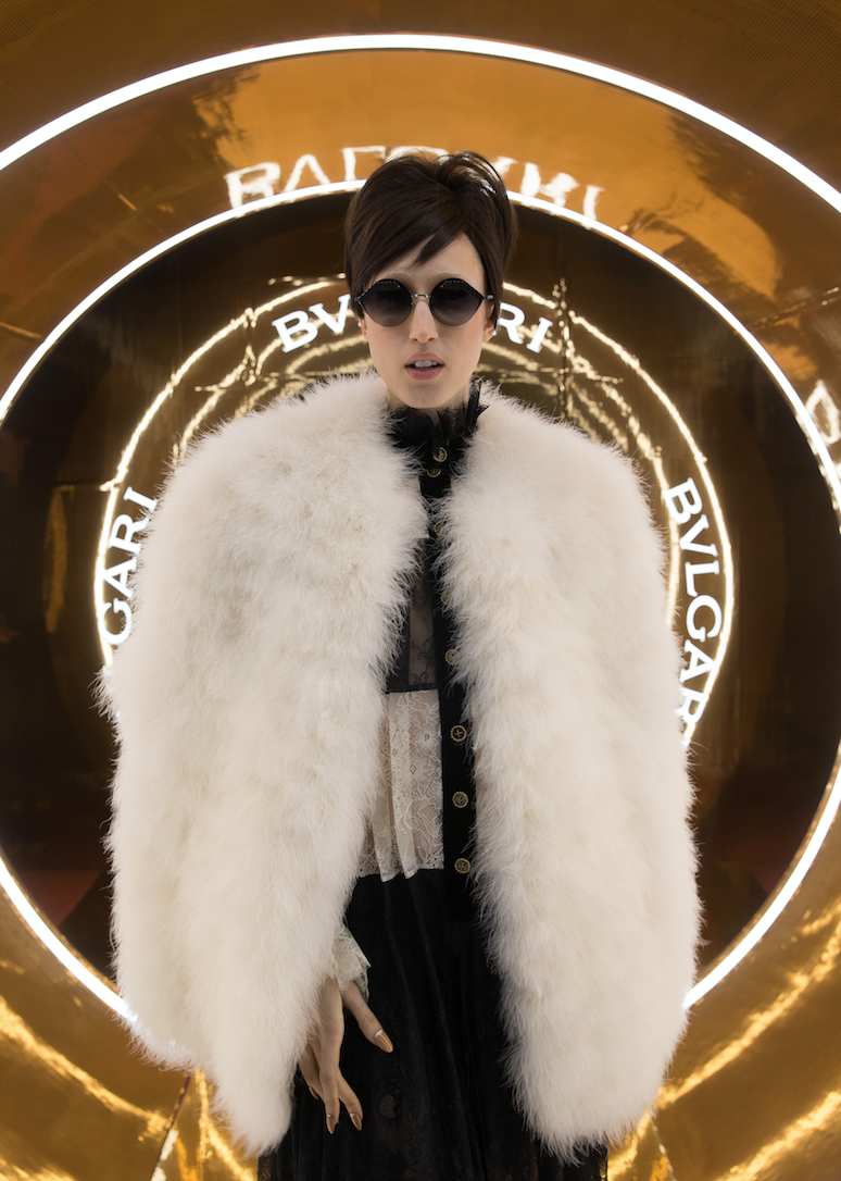 A fin de reflejar el estilo de vida y dinamismo de las divas más icónicas en el mundo actual, la pasarela se llevó a cabo en el Hotel Bulgari Milán, el cual fungió como escenario principal con ambiente rockero de los años setenta.