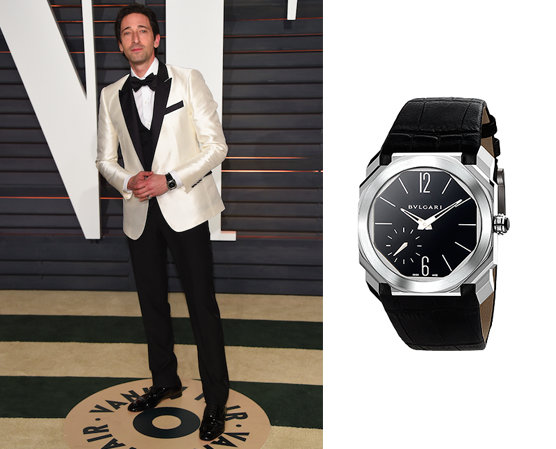 Adrien Brody lució en su muñeca un reloj BVLGARI OCTO Finissimo con una caja ultra delgada de platino de 40 mm y un brazalete negro de piel de cocodrilo.