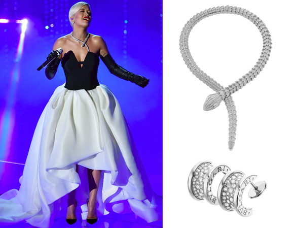 Rita Ora, no sólo nos dejó sin habla con su interpretación de “Grateful”, si no que también con su outfit, que complementó a la perfección con un collar SERPENTI de oro blanco con diamantes en corte pera y en pavé, más unos aretes B.ZERO1.