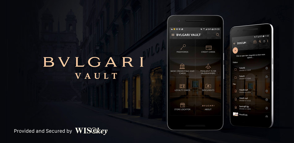 Bvlgari Vault es presentada para proteger los datos digitales, que hoy forman parte de las posesiones más valiosas de cualquier persona. WISeKey es la empresa líder en eSecurity a nivel mundial, es suiza y presenta una versión actualizada de su más avanzado desarrollo, disponible ya en la tienda Google y Apple.