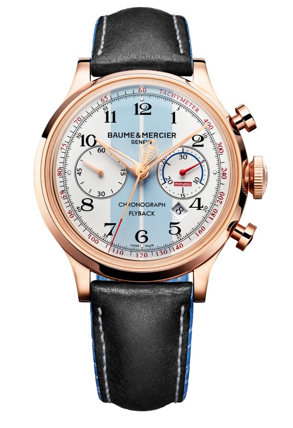 Inspirado por los códigos originales del diseño de un Cobra, el cronógrafo presenta una carátula blanca con dos líneas verticales que le cruzan en color azul. Asimismo, su movimiento automático cronógrafo flyback está albergado en una caja de oro rosa de 18 quilates con extensión de 44 mm de diámetro.