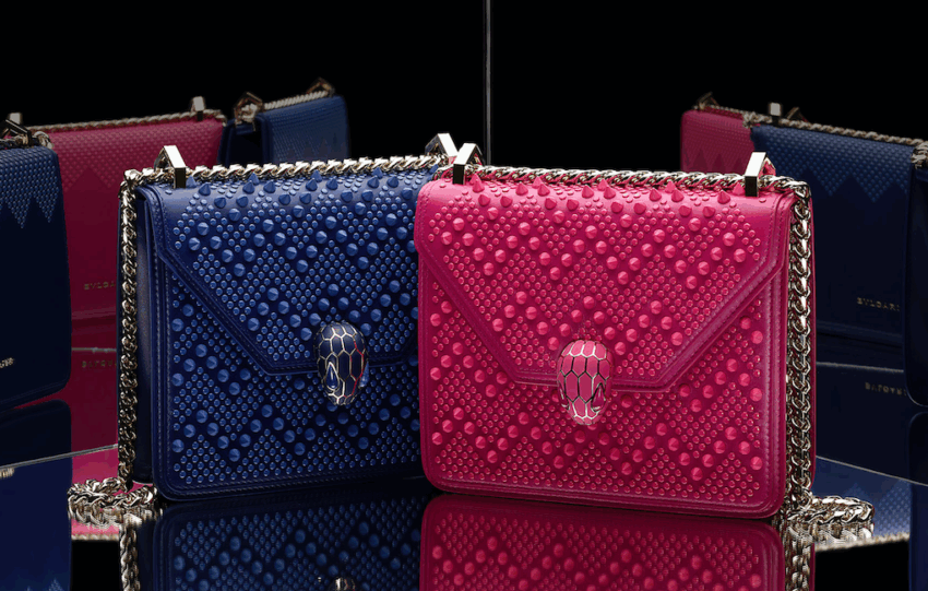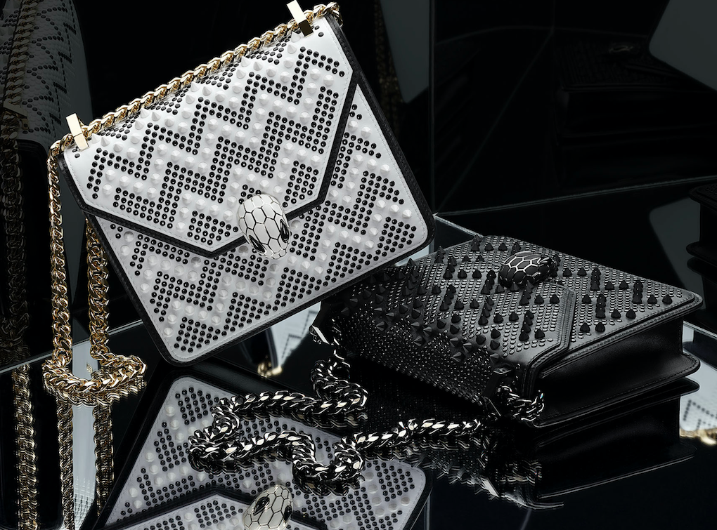 Clavos barnizados, botones planos y redondos, estoperoles y un esmaltado elegante sobre el signo emblemático de Bulgari, son algunos de los accesorios que resaltan por su calidad y brillo a cada momento. Ya sea un bolso cuadrado o rectangular en tonos blancos, negros o rosas, estos básicos en la moda femenina se adaptarán a cualquier personalidad firme y elegante.