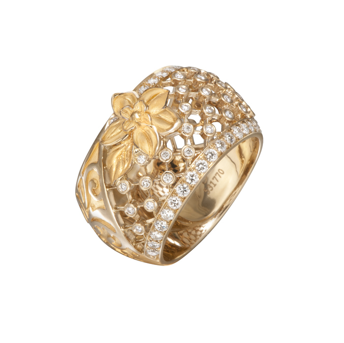 Símbolo de lo natural y la elegancia, esta flor es el motivo principal de esta colección que representa la línea de Alta Joyería de Seda Imperial.