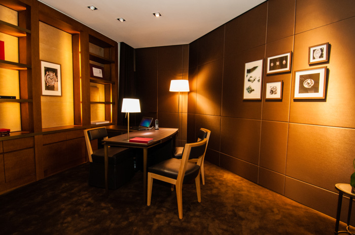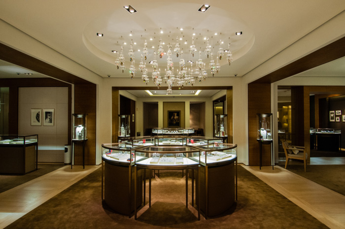 La nueva boutique ofrece 4 salones VIP que responden a un servicio especializado enfocado en una selección de anillos de compromiso, joyas y una extensa atmósfera relojera. Arquitectura resaltada por materiales como el mármol, maderas finas y el bronce, recuperando el estilo art déco que recae en un lujo clásico y tradicional, creación de Bruno Moinard, responsable del interiorismo de todas las boutiques Cartier a nivel internacional, y que sigue los cánones estéticos de la firma parisina. Las paredes de tonos claros contrastan con el cuero oscuro de las mesas y consolas, transmitiendo la elegancia característica de Cartier.