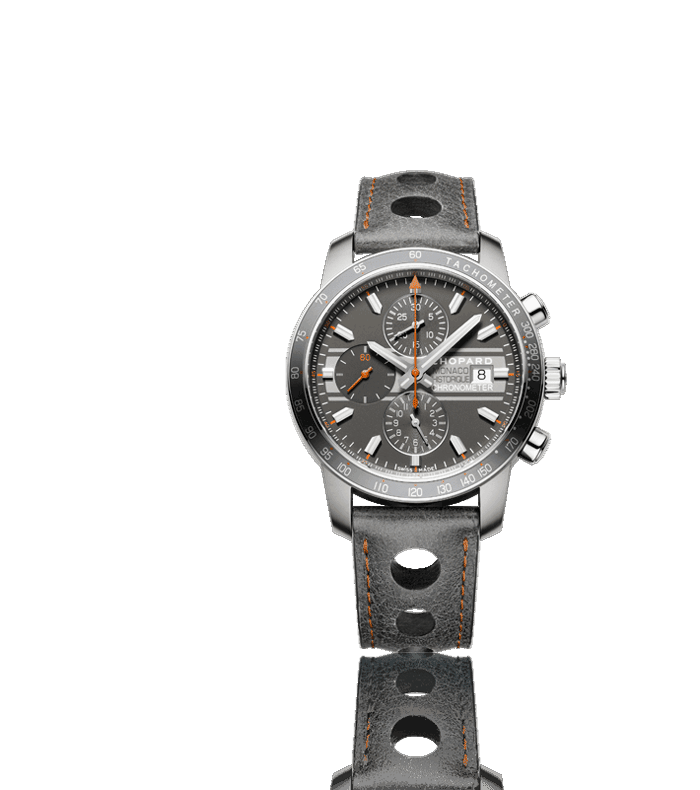 - Cronometrador oficial del Grand Prix de Monaco Historique desde 2002, Chopard ha creado el modelo Grand Prix de Monaco Historique en titanio. Su carátula es gris y deportiva, el movimiento es visible en el reverso donde también se aprecia gravado el logotipo del Monaco Automobile Club. Cronómetro certificado por el COSC.