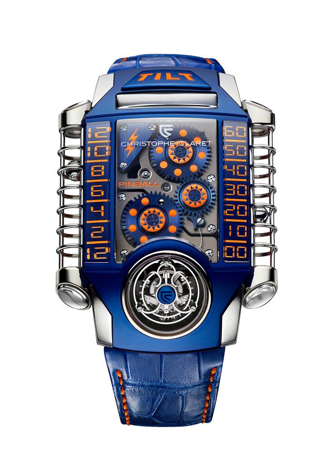 Este 2013, con motivo de la 5ª edición de la subasta caritativa Only Watch, la firma presenta el X-TREM-1 Pinball. Para realizar este reloj, se ha pensado ante todo en los niños y en una de sus actividades favoritas: los juegos. Christophe Claret se ha inspirado en el pinball para hacer evolucionar de una forma muy original el reloj X-TREM-1. De hecho, las bolas que indican las horas y los minutos, integradas inicialmente en tubos de zafiro, se desplazan ahora en rejillas cilíndricas. No obstante, la casa de Alta Relojería con sede en Le Locle no se ha detenido ahí, y ha optado por personalizar la estética del movimiento para conferirle un aspecto interior similar al de una máquina de pinball. Equipado con paletas, bandas de rebote y pelotitas color blanco, el mecanismo se transforma en una máquina de diversión que además brinda una lectura lúdica del tiempo; incluso los colores azul y naranja claro reflejan el universo del pinball. La manufactura dedica el X-TREM-1 Pinball al proyecto benéfico Only Watch 2013, que tendrá lugar en Mónaco el 28 de septiembre, con la benevolencia de S.A.R. el Príncipe Alberto II de Mónaco, para recaudar fondos en favor de la investigación de la Distrofia Muscular Duchenne.