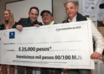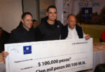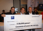 - Sergio y Ari Berger en la entrega del certificado por 100 mil pesos a Jorge Cantú.