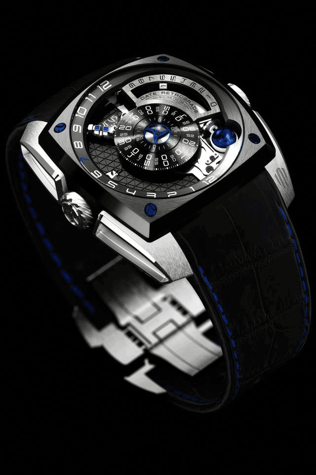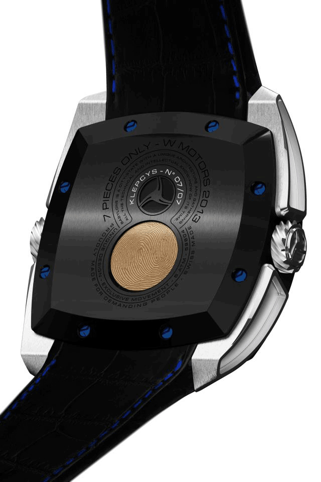 Se trata de las únicas siete piezas de este modelo que en el reverso lucen la huella digital del multipremiado relojero suizo Jean- François Mojon. Observen los tornillos azules y las costuras… Exclusividad en su máxima expresión.
