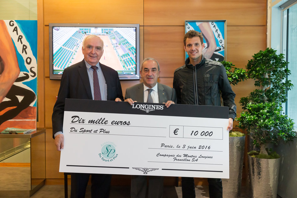 En plena celebración, Longines ha entregado un cheque por 10,000 euros a la organización Sport et Plus, la cual busca mejorar la calidad de vida de niños hospitalizados en ocho establecimientos pediatricos a lo largo y ancho de Francia.