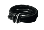 - Cuero negro, aros cubiertos de nanocerámica engastados con diamantes blancos y negros.