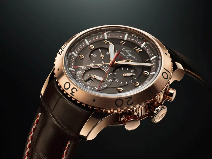 Breguet sorprenderá en Basel con un modelo inédito del emblemático Type XXII en oro rosa de 18 quilates. La nobleza de este material sublima el aspecto de este reloj único que posee un movimiento cronógrafo Breguet con escape y espiral plano de silicio, cuya frecuencia ha sido aumentada a 10 Hz, es decir, ¡72,000 alternancias por hora!