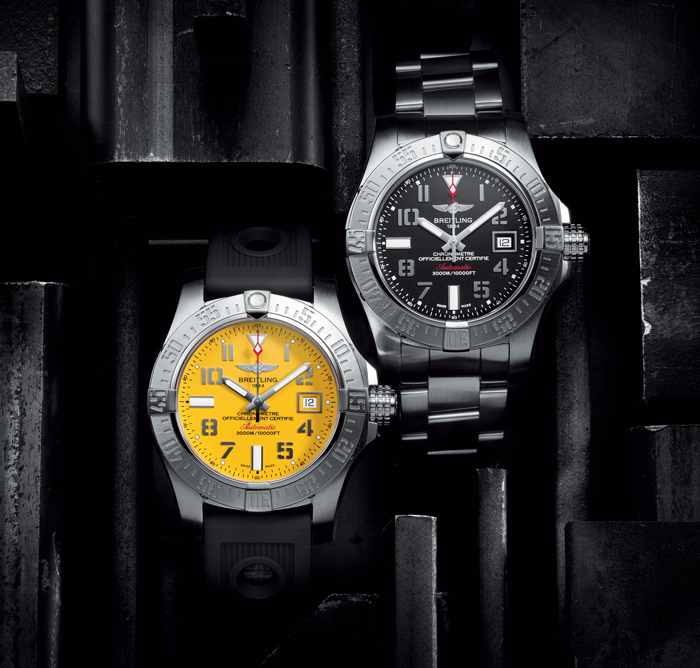 - Avenger II Seawolf, auténtico instrumento de precisión para profesionales del buceo con un estilo más técnico, funcional y potente para todas la misiones y aventuras bajo el agua. De la línea Avenger II de Breitling, el superbuceador profesional Avenger II Seawolf cuenta con una caja ligeramente más plana y con un perfil más ergonómico y sumergible hasta una profundidad de 3 mil metros.