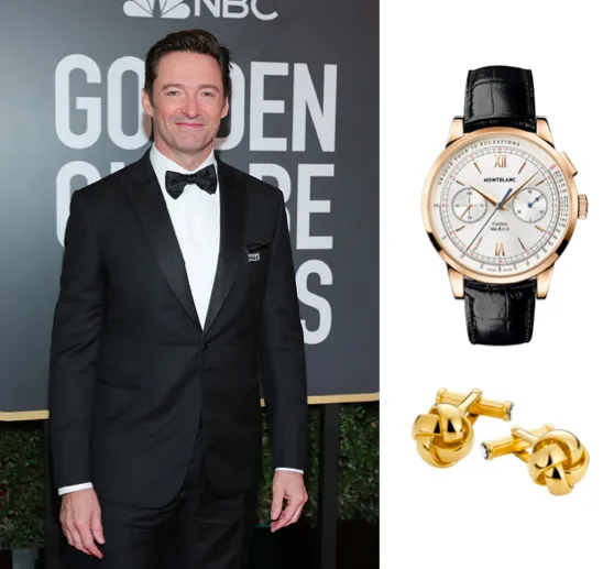Hugh Jackman, nominado como mejor actuación por la película “The Greates Showman” usó el reloj Montblanc Heritage Spirit Pulsograph (ref. : 111626) y las mancuernillas de oro en forma de nudo. El también Embajador Global de la marca es un personaje sumamente querido y fotografiado de las alfombras rojas a nivel internacional.