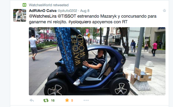 Fiel a su compromiso con usted, estimado lector, coleccionista y apasionado de los instrumentos que miden el tiempo, Watches World se acercó a Tissot a fin de proponer una dinámica excepcional, y con ello entregar el reloj al mejor tiempo de la carrera –”5 kilómetros”– efectuada el domingo, pero también disponer de un T Touch Expert Solar a fin de completar la dinámica de concurso “Tómate una Selfie con el #WatchesCar y gana un T Touch Expert Solar”