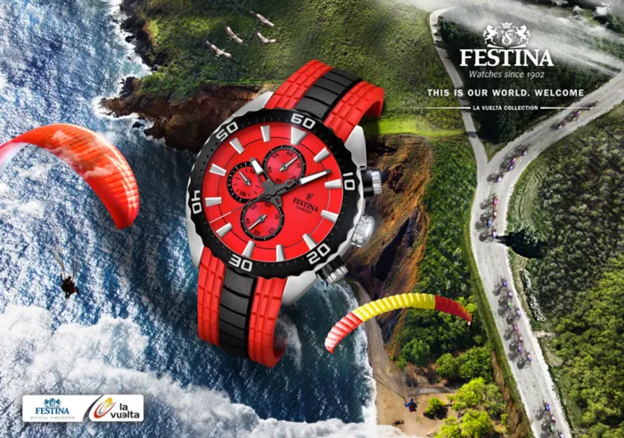 El desgaste y demanda que sugiere la Vuelta a España (desde 1935), es por demás reconocido, por lo que dicha competición se encuentra a la altura de las conocidas como “Grandes Vueltas”, junto con La Tour de France y el Giro de Italia, de las cuales Festina también es socio y patrocinador (Cronometrador Oficial). Inicialmente conocida como la Vuelta ciclista a España, promovida por Clemente López Doriga y Juan Pujol, se corrían 14 etapas y una distancia de 3,431 km, misma en la que se coronó el belga Gustaaf Deloor después de una difícil duelo por la punta con el español Mariano Cañardo. La edición actual partirá de Villanueva de Arosa el día 24 de agosto y culminará el 15 de septiembre en la capital española tras haber completado 21 etapas y un recorrido de 3, 319 kilómetros. Ese mismo día se definirá al ganador, resultando vencedor aquel ciclista que complete la totalidad del recorrido en el menor tiempo: maillot rojo.