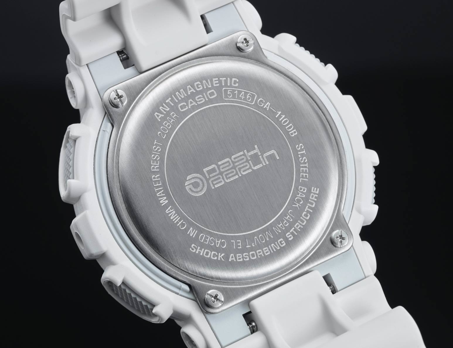 Y es que, en esta ocasión, la relojería demostró una vez más su constante innovación al relacionarse con exponentes del mundo musical que reflejan su pasión por la medición exacta del tiempo. El icónico modelo GA110DB-7A que alberga la misma esencia de resistencia y durabilidad de G-Shock, se presenta ahora con una carátula y correa en blanco, tono predilecto por el DJ.
