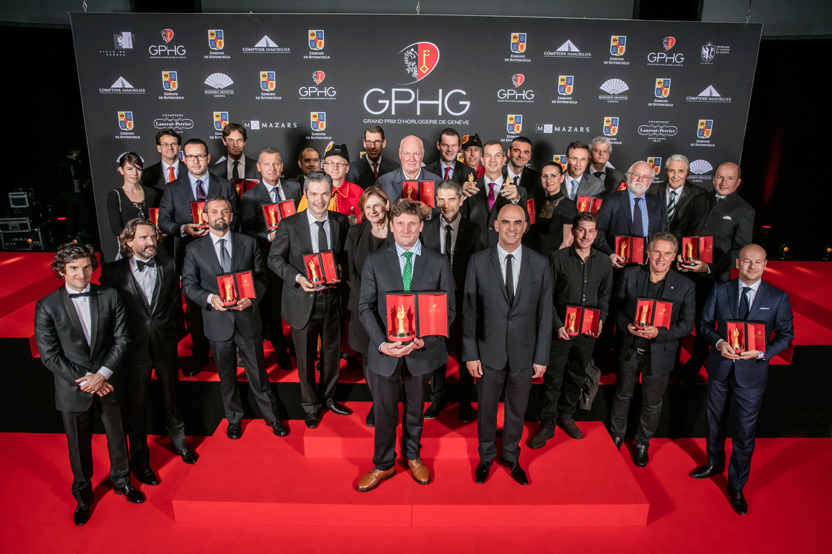 (1) Ladies Watch Prize: Hublot, Big Bang Broderie; (2) Ladies High-Mech Watch Prize: Fabergé, Lady Compliquée Peacock; (3) Mens Watch Prize: Voutilainen, Voutilainen GMR; (4) Chronograph Watch Prize: Piaget, Altiplano Chrono; (5) Tourbillon Watch Prize: Ulysse Nardin, Ulysse Anchor Tourbillon; (6) Calendar Watch Prize: Hermès, Slim d´Hermès QP; (7) Striking Watch Prize: Girard-Perregaux, Minute Repeater Tourbillon with Gold Bridges; (8) Mechanical Exception Watch Prize: Jaquet Droz, The Charming Bird; (9) “Petite Aiguille” Prize: Habring2, Feliz; (10) Sport Watch Prize: Tudor, Pelagos; (11) Jewellery Watch Prize: Audemars Piguet, Diamond Punk; (12) Artistic Crafts Watch Prize: Blancpain, Villeret, cadran Shakudo; (13) Revival Watch Prize: Piaget, Extremely Piaget Double Sided Cuff Watch; (14) Innovation Watch Prize: Antoine Preziuso, Tourbillon of Tourbillons; (15) Horological Revelation Prize: Laurent Ferrier, Galet Square; (16) Special Jury Prize: Mike Pintus, Yannick Pintus & Jean-Luc Perrin, relojeros de Vacheron Constantin, desarrolladores de la Referencia 57260 (El reloj más complicado de la historia). Finalmente, el (17 ) Premio del Público fue entregado a Antoine Preziuso, por su Tourbillon of Tourbillons.