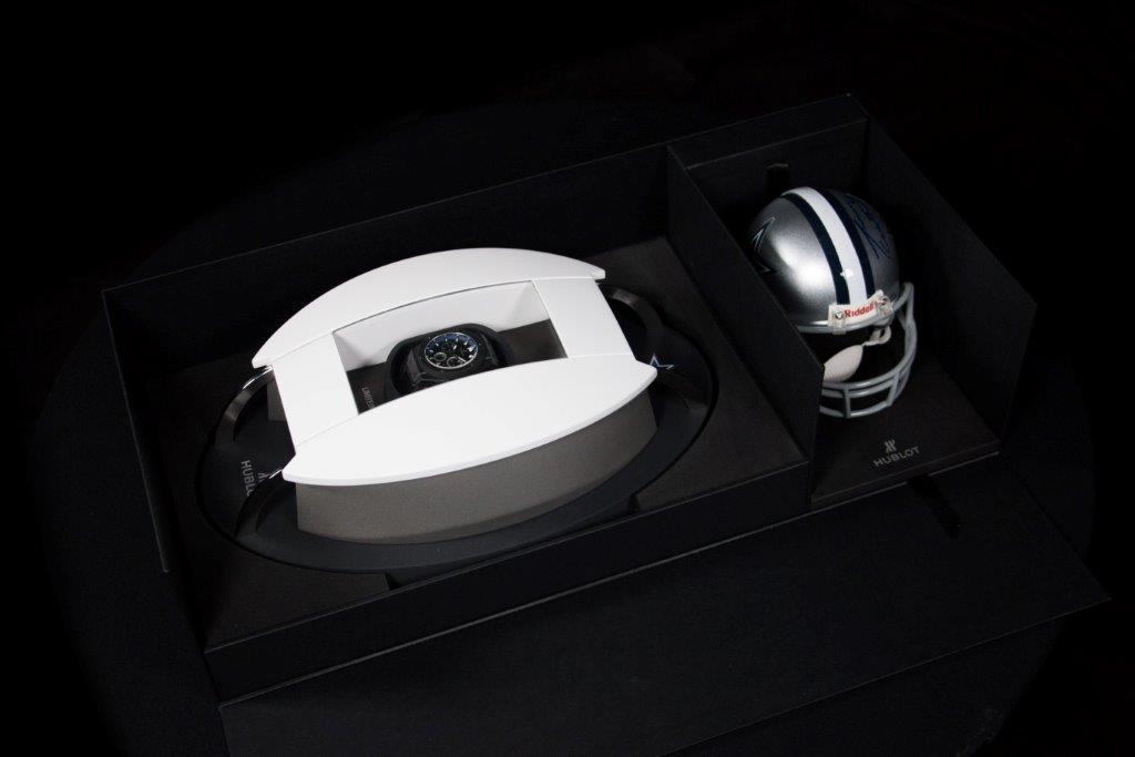El plato fuerte del evento de lanzamiento fue la presencia de los jugadores estrella de los Cowboys, que acaban de convertirse en amigos de la marca Hublot, como el quarterback de los Cowboys Jason Witten, el running back, DeMarco Murray, el offensive tackle, Tyron Smith, el wide receiver, Dez Bryant, el linebacker, Sean Lee, y el entrenador titular, Jason Garrett, que participaron en la inauguración de la colección especial de relojes diseñada por Hublot y la familia Jones. Los invitados pudieron disfrutar de un avance de la próxima temporada gracias a la familia Jones y a los jugadores, y pudieron reservar los ejemplares numerados de la edición limitada, que estarán disponibles en las tiendas para el día del partido anual del Día de Acción de Gracias de los Cowboys y la temporada de vacaciones. Las tres ediciones se prestan una caja de reloj inspirada en el lujoso estadio AT&T e incluyen un casco en miniatura firmado para seguidores incondicionales.