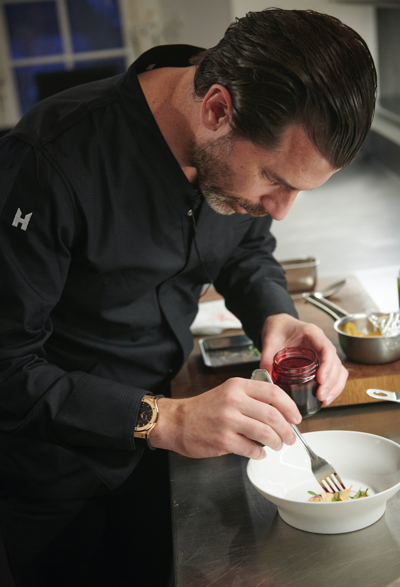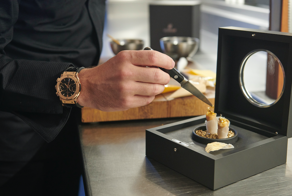 Para el éxito de esto es necesario tener la presión de los relojes Hublot y la exactitud y el buen sazón de Caminada. Por ello, la marca acompañó al chef en la elaboración de cada uno de sus platillos con algunos de sus relojes que se ajustaron a su muñeca con gran firmeza.