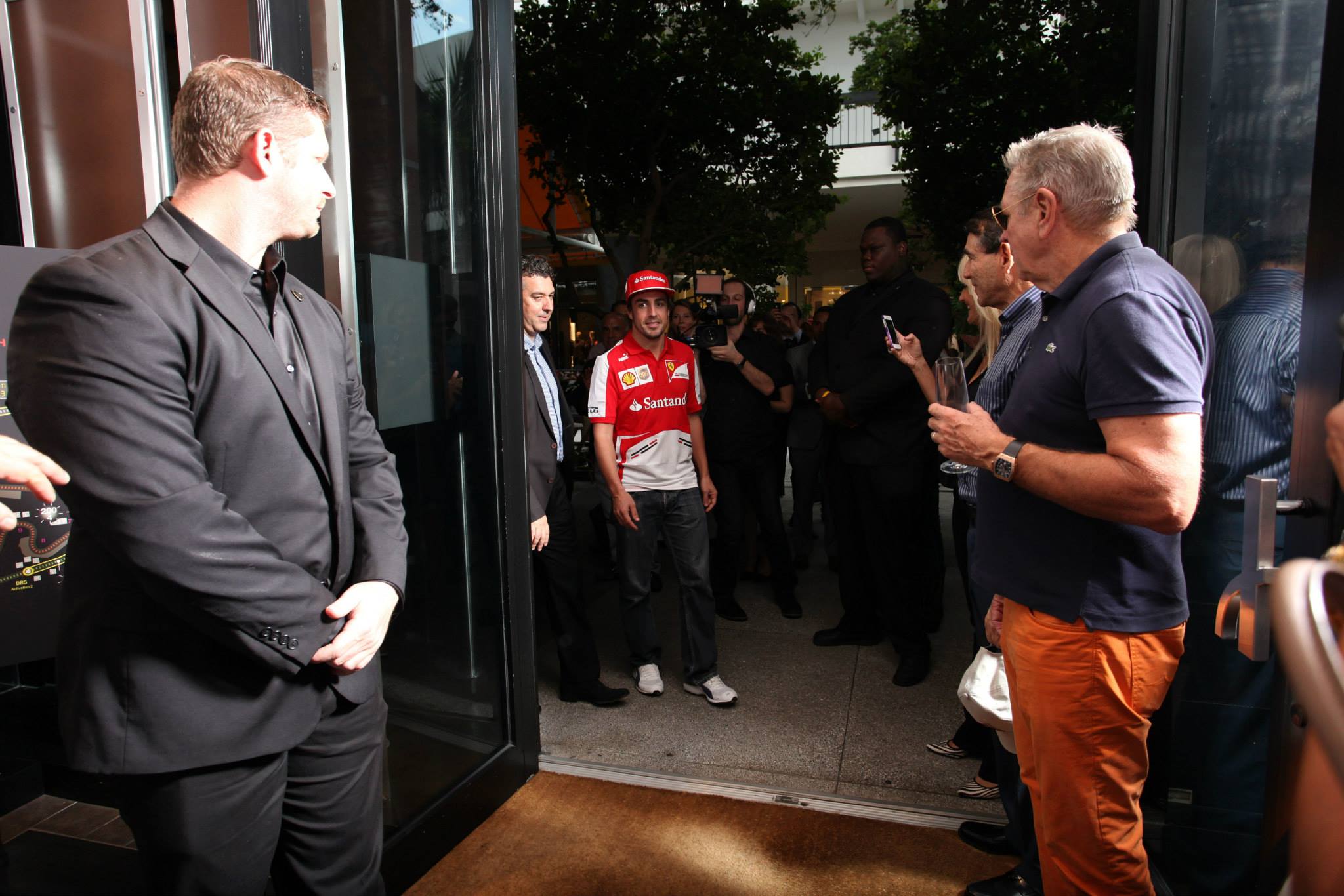 Aprovechando su presencia en el continente americano, Fernando Alonso de la escudería Ferrari, visitó la boutique de Hublot en Bal Harbour donde coincidió con Jacqueline Bracamontes, la embajadora internacional de la marca. Ambas empresas han logrado una gran sinergia en este tiempo y se ha visto reflejada alrededor del mundo, ya que tan solo este año se han llevado a cabo 130 eventos compartidos.