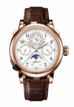 - Richard Lange Calendario Perpetuo “Terraluna” // Movimiento: mecánico de cuerda manual / Calibre: L096.1 de manufactura, decorado y montado a mano; regulación en cinco posiciones, doble barrilete y mecanismo de reajuste de la tensión con resorte de cuerda intermedio de fabricación propia; platina tres cuardos de alpaca natural y puente del volante grabado a mano / No. de piezas: 787; joyas: 80 rubíes / Frecuencia: 21,600 a/h / Reserva de marcha: 14 días / Funciones: horas, minutos y segundos; calendario perpetuo con gran fechador, día de la semana, mes y año bisiesto; indicación de reserva de marcha; indicación orbital de las fases de la Luna día/noche al anverso / Caja: 45.5 mm de oro rojo o blanco de 18 quilates / Cristal: zafiro por ambos lados / Carátula: plata maciza / Correa: piel de cocodrilo cosida a mano color marrón / Hebilla: de oro rojo o blanco desplegable.