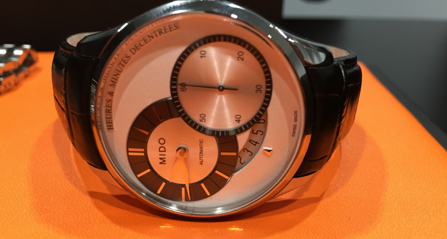 Descubrimos un Mido totalmente diferente, una pista de lo atrevido que puede ser la marca. Un reloj que tiene un gran segundero a las cinco, las horas a las nueve y un fechador abierto entre ambos contadores. Terminados distintos en sus contadores, especialmente el de las horas ocupando “Brass” y anillos de distintos colores, así como 3 acabados diferentes. Sin duda una de las grandes sorpresas.