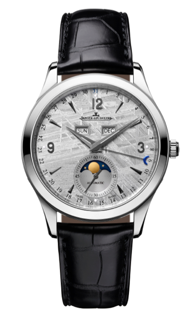 En segunda instancia compartimos la belleza y exclusividad de una pieza que, por la concepción de su carátula de meteorito, recibe una condición única e irrepetible. El meteoro fue hallado en Suecia, y tras haber sido cortado en finos capas, es aprovechado para rendir un homenaje al tiempo y al espacio al estilo suizo, al estilo Jaeger-LeCoultre. El motor 866 de 43 horas de reserva de marcha y carga automática, da vida a: las horas, minutos, segundos, día, fecha, mes y fase Lunar.