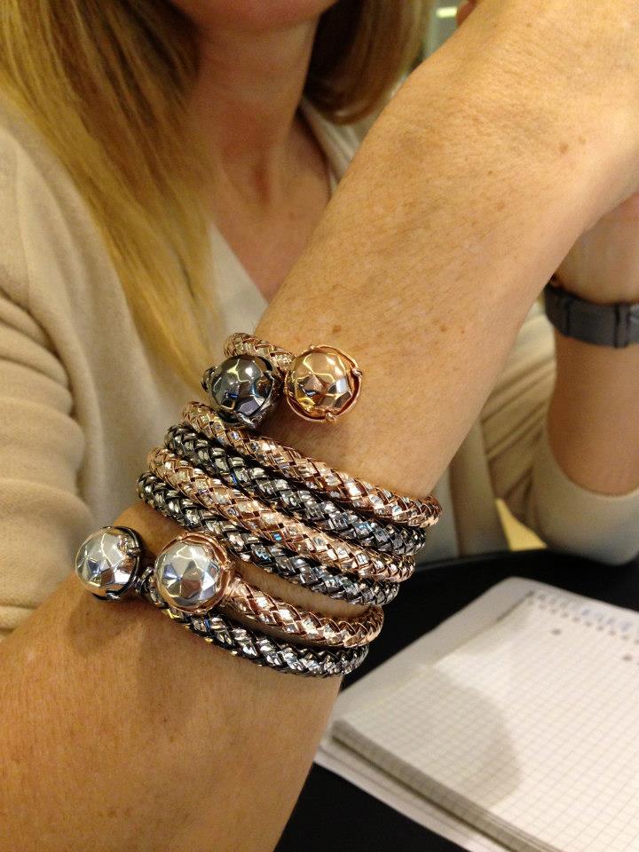 - Nuevos brazaletes en plata con baño de oro rosa y rutenio. Gracias a los hilos de plata flexibles, vuelven a su curvatura perfecta al ponerse y quitarse. No lastiman, se adaptan a la muñeca de cualquier talla de brazo. Su flexibilidad es una gran ejecución técnica en la joya.