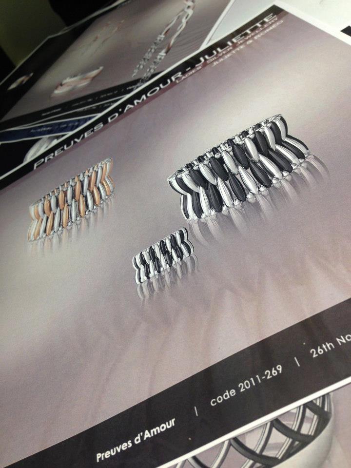 - Al conocerla había combinado su brazalete de oro rosa con el de rutenio, a la vez se tallaron ya con los terminados, para hacer lucir el brillo de la plata debajo. Una gran ejecución. La nueva era Montblanc, colección 2013.