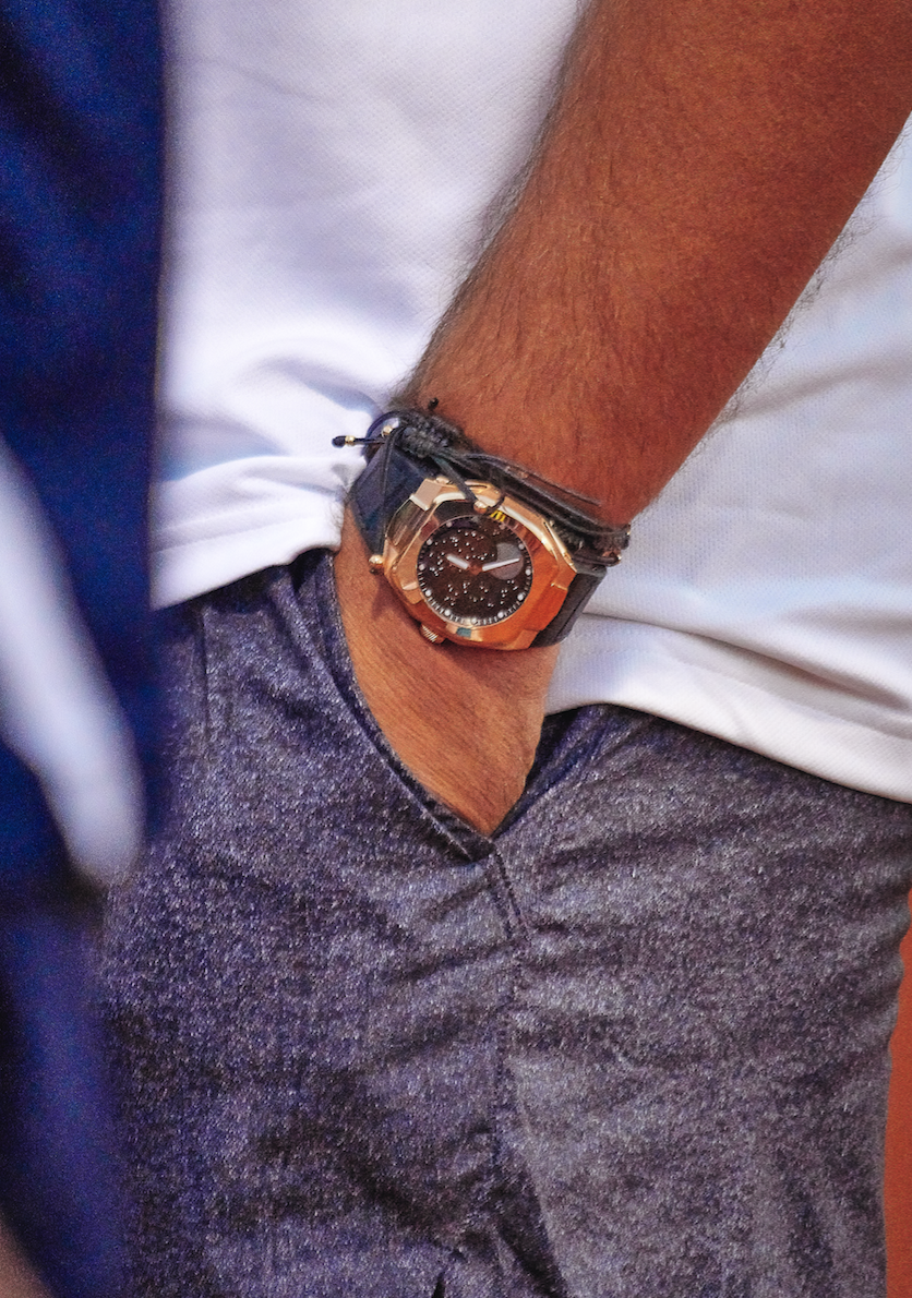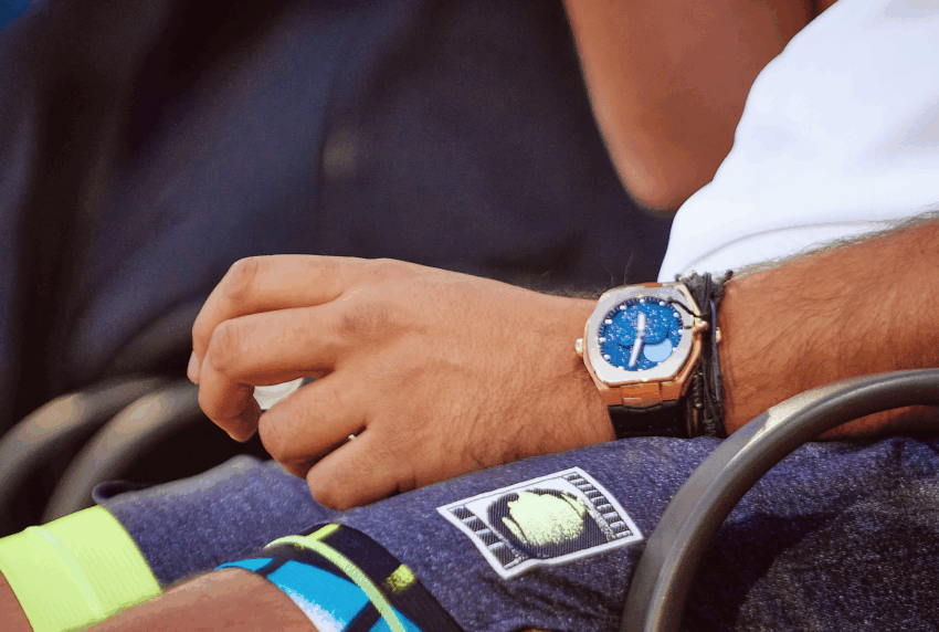 Durante el juego, Nicolás Almagro, amigo de la marca, ajustó un reloj Moön Black Cosmic en oro rosa, de 41 mm pieza. Este modelo es embellecido por tener un cielo estrellado y una luna con acentos más masculinos dentro de la carátula a diferencia de la versión en aventurina.