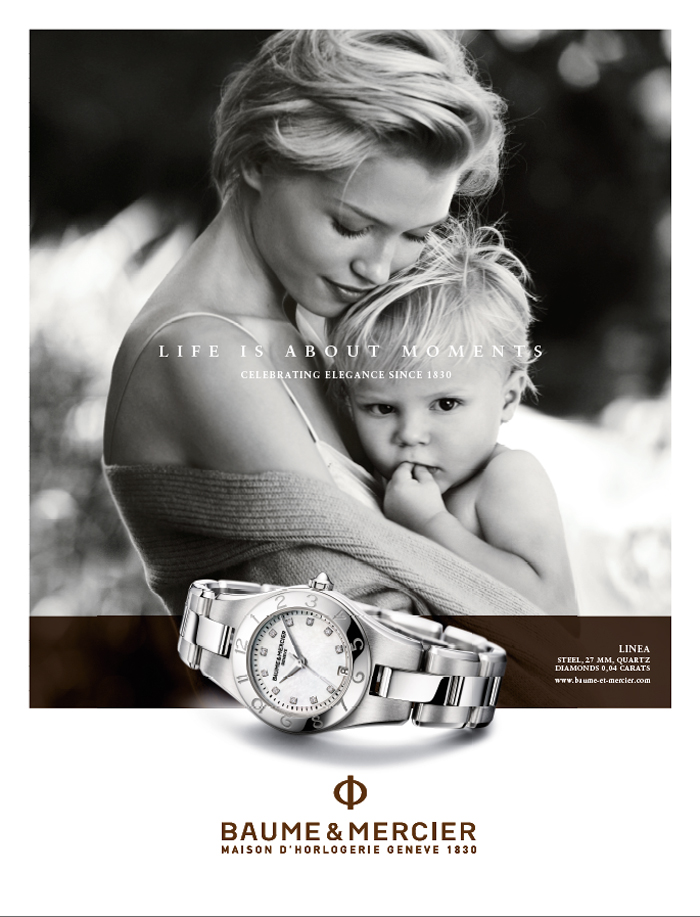 La nueva campaña de publicidad involucra al genial fotógrafo Peter Lindbergh quien, a través de su lente refleja las historias y relatos de momentos decisivos en el camino de cada persona. Para Baume & Mercier, el tiempo es mucho más que una sucesión de segundos, minutos y horas; el tiempo viene marcado con momentos únicos a los que la marca se asocia como testigo. La vida se compone de esos momentos especiales, solemnes o excepcionales, cargados de emoción, que disfrutamos celebrándolos y recordamos para siempre.