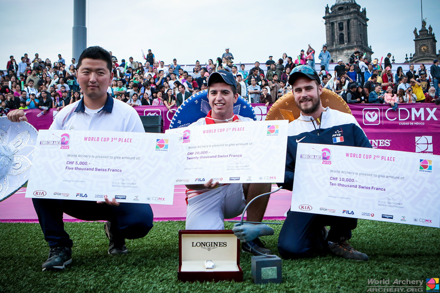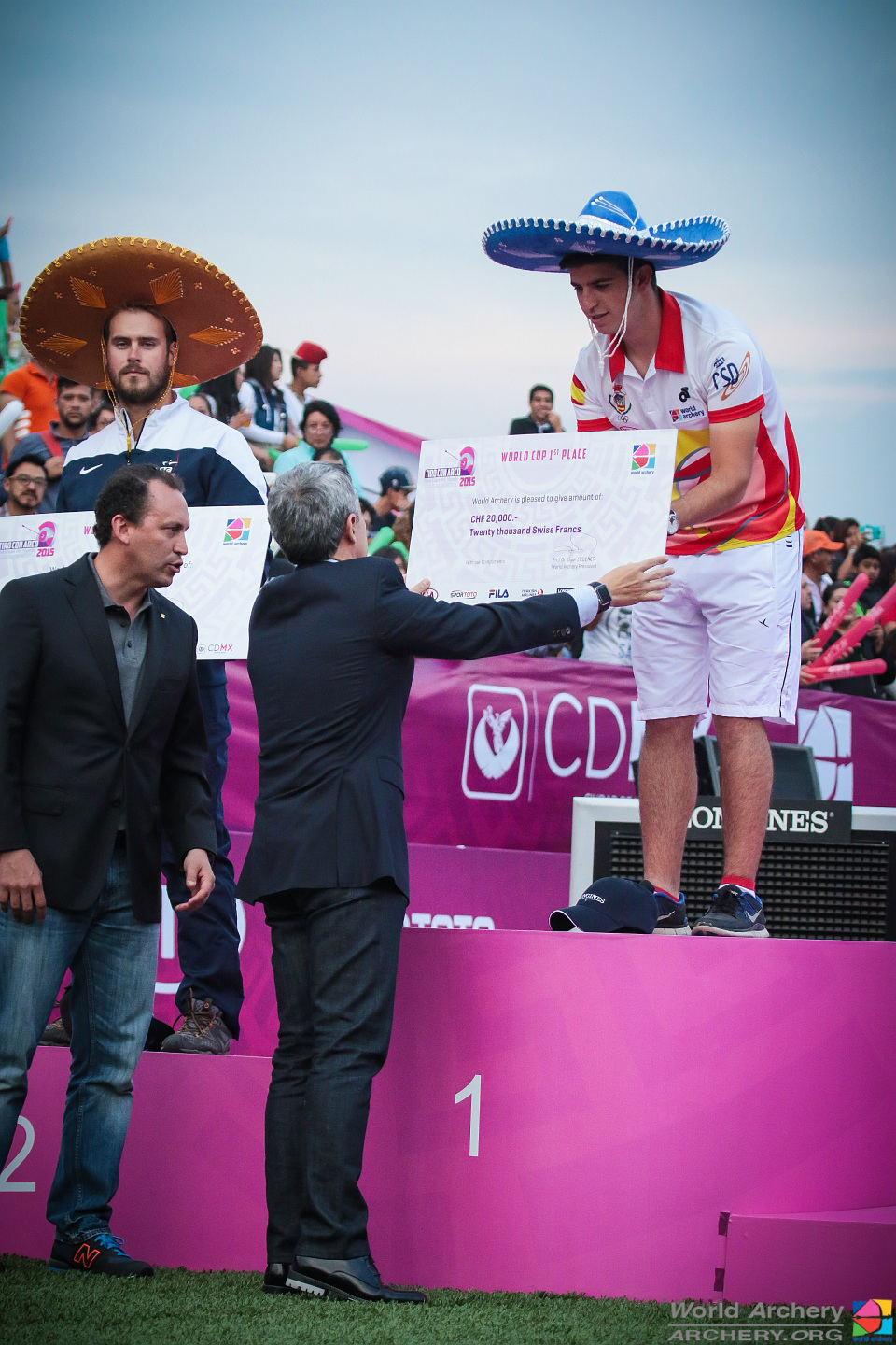 Sara López de Colombia, y Mike Schloesser, de Holanda, recibieron un premio económico y un reloj Longines en reconocimiento a su destreza en la categoría mixtos. Igualmente, la temporada de la Copa Mundial de Tiro con Arco Longines, premió a los tres primeros sitios en categoría masculina y femenina de las disciplinas de arco compuesto y recurvo, siendo Miguel Alvarino, arquero español y Choi Misun, los dos mejores del evento deportivo, al cual asistió el Jefe de Gobierno del D.F., Miguel Ángel Mancera.